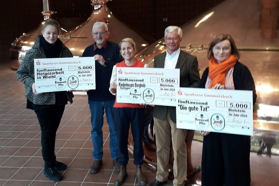 Wertvolle Projekte in der Region fördern: Das ist das Anliegen der Erzquell Brauerei Bielstein, Dabei bedachte die Brauerei mit ihrer Weihnachtsaktion auch den Förderverein der Hospizarbeit mit 5000 Euro.