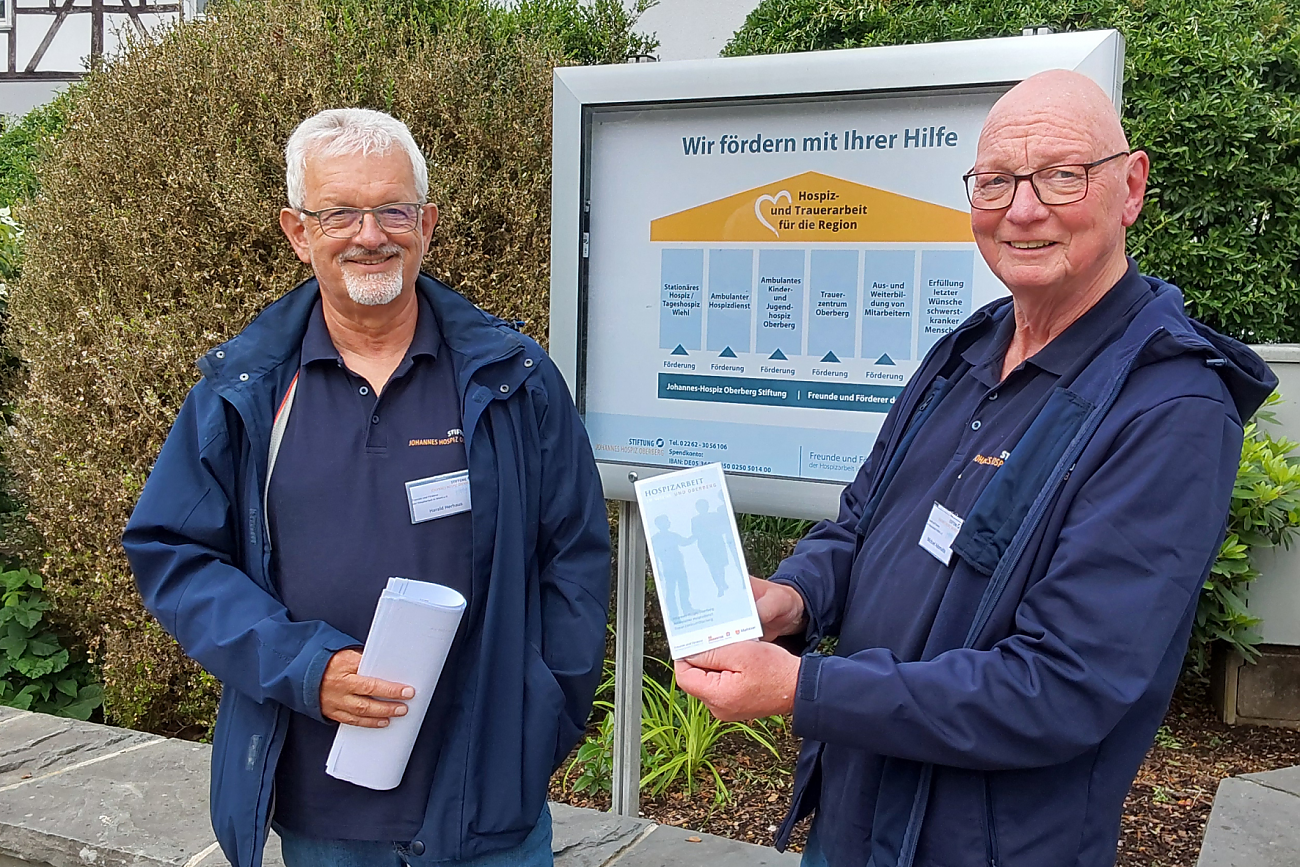 Wie Michael Adomaitis ist er ehrenamtlich für den Verein „Freunde und Förderer der Hospizarbeit in Wiehl e.V.“ und die Johannes-Hospiz Oberberg Stiftung aktiv. In Kooperation helfen Förderverein und Stiftung gemeinsam bei der Finanzierung der Hospizarbeit und Trauerdienste in der Region.