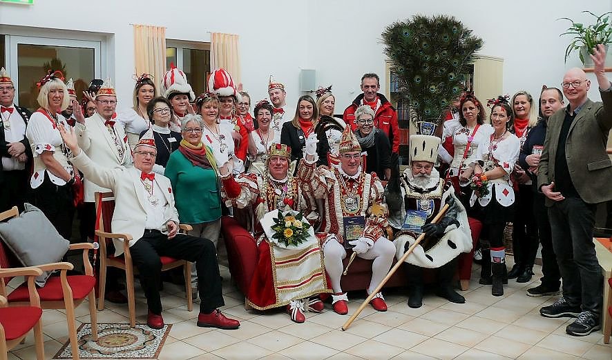 „Ein freundliches Willkommen und herzlichen Dank für kreative Ideen und ihr Engagement, ohne die die umfassende Begleitung Sterbender durch Johanniter und Malteser nicht möglich wäre", bedankte sich Stiftungsmanager Michael Adomaitis bei den rund 30 närrischen Besucherinnen und Besuchern der KG sowie bei Steinserv-Geschäftsführer Roman Przybilla.
