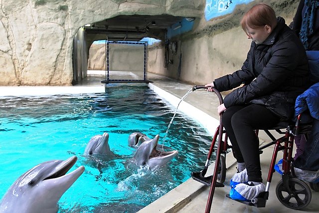 Besonders gefreut hat sich die Nümbrechterin über den Besuch im Duisburger Zoo. Es war die Erfüllung eines großen Wunsches. Denn Cindy Müller wollte unbedingt die Delfine sehen. Ermöglicht wurde der Tag im Zoo durch die gelebte Kooperation der Johanniter, die den Krankentransport übernahmen, mit dem Förderverein der Hospizarbeit in Wiehl, der den Ausflug finanzierte, sowie den Maltesern, die für die ambulante Begleitung sorgten. So ging es unter anderem mit Tina Eyer nach Duisburg. Und wie groß Cindys Freude über diesen Ausflug war, zeigt sich auch jetzt noch: „Wir durften die Delfine aus nächster Nähe beobachten, und der Tierpfleger hat uns alles genau erklärt. Es war genau so, wie ich es mir erhofft hatte." Ein Tag den Cindy Müller nicht vergessen wird - und der ihr auch ein Stück weit Kraft gegeben hat, um weiter gegen den Krebs anzukämpfen.
