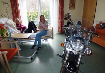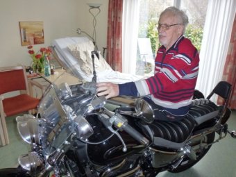 Dem Pflegepersonal im Hospiz erzählte er immer wieder von seiner Leidenschaft für sein Motorrad. Und als sein Baby plötzlich den Weg von Radevormwald bis in sein Zimmer im Johannes-Hospiz zurückgelegt hatte, traute Pfitzner seinen Augen nicht. „Ich habe mich unglaublich darüber gefreut. Das war eine ganz tolle Überraschung."