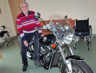Die Maschine steht jetzt in der Mitte des Zimmers, direkt neben seinem Krankenbett - auf Hochglanz poliert. Damit ist ein Wunsch des 77-Jährigen in Erfüllung gegangen. „Ich kann mich in den Chromteilen spiegeln und mein eigenes Lächeln darin sehen", erzählt Pfitzner. Natürlich hat er auch direkt wieder auf dem Sattel Platz genommen und das Gefühl genossen. „Jetzt darf mein Baby hier stehen bleiben. Bis der liebe Gott mir für immer die Augen schließt."